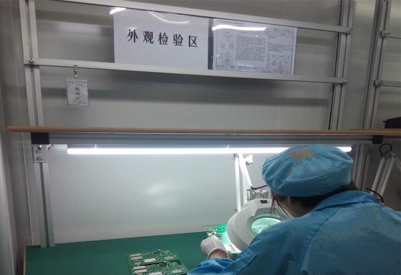 每條SMT生產線都配置了全自動光學檢測儀器(AOI),可檢測焊接后器件偏移、少錫、短路、污染、缺件、歪斜、立碑、側立、翻件、錯件、破損、浮高、極性、虛焊、空焊、溢膠、錫洞、引腳未出等不良。