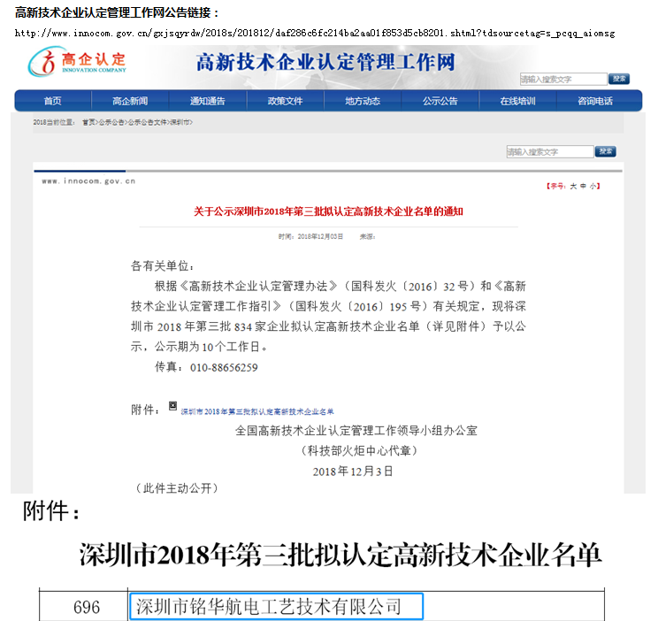 熱烈祝賀銘華航電獲得國(guó)家高新及深圳市高新雙新認(rèn)證