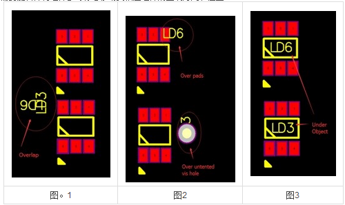 檢查放置在與焊盤(pán)重疊的電路焊盤(pán)上的元件參考指示器標(biāo)記,如圖2中圈出的第一個(gè)組件標(biāo)記。 由于它們通常被裁剪掉而沒(méi)有被打印,并且在PCB組裝和故障排除期間需要將組件參考標(biāo)記作為參考,所以您需要將這些標(biāo)記移動(dòng)到位于相應(yīng)組件旁邊的開(kāi)放空間。