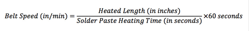 對于您正在考慮的每個烤箱,將加熱長度(以英寸為單位)除以建議的總加熱時間(以秒為單位)。 然后乘以60秒以獲得皮帶速度(英寸/分鐘),您需要實現該輪廓: