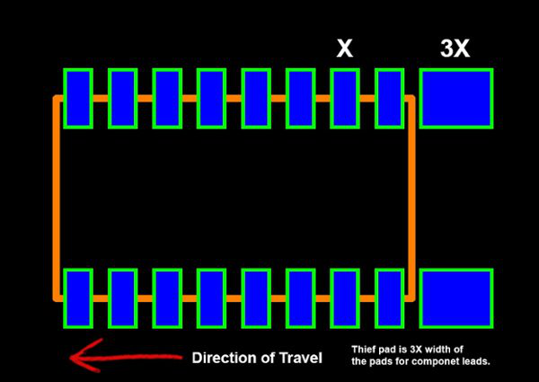 在PCB圖形中添加焊錫墊,以允許多余的焊錫從連接器流出,從而避免橋接。