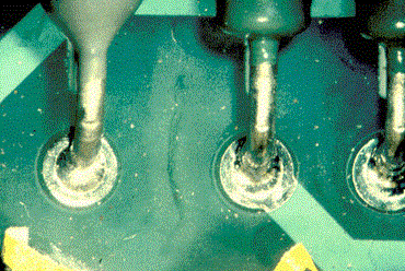 圖3:焊盤表面的粘合劑污染導致這種焊錫跳動。