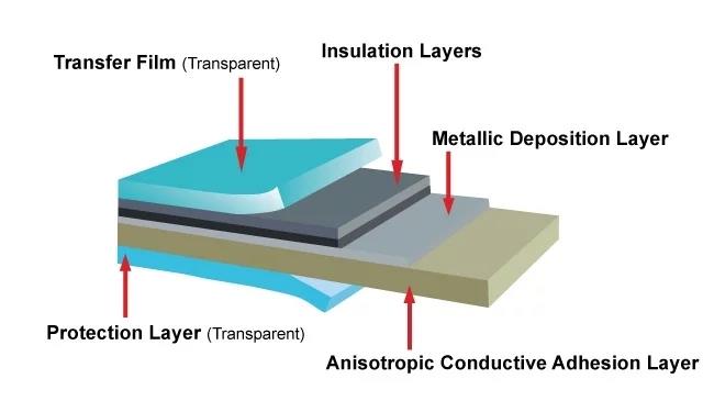 屏蔽膜由覆蓋層表面上的附加層選擇性專用層壓板組成。 這些電影的開發是為了滿足手機/數碼相機和攝像機市場的需求。 與銀墨一樣,覆蓋層中的選擇性開口暴露接地電路并形成互連位置。 屏蔽膜具有由導電粘合劑,金屬沉積層和隔離層組成的3層結構。