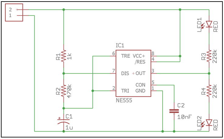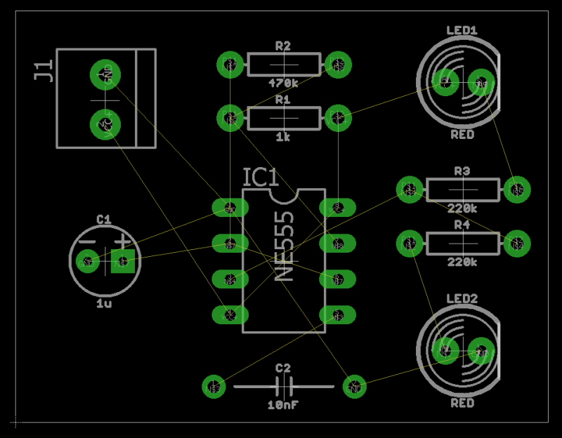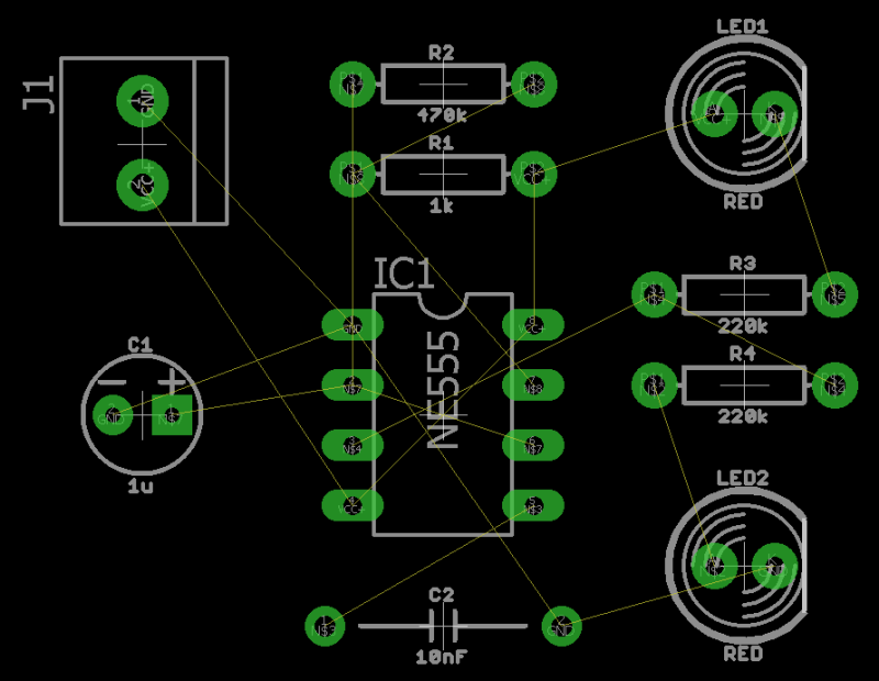 我們的完整的LED閃光燈示意圖,我們會變成一個PCB布局。