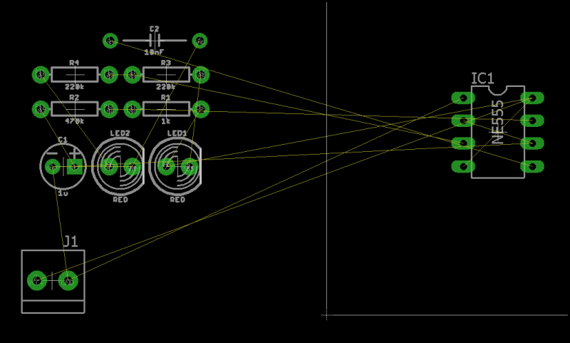 你會注意到一堆之間的組件連接線。這些被稱為airwires。你也可能聽到它被稱為ratsnest。這些airwires幫助你了解你的組件的連接。