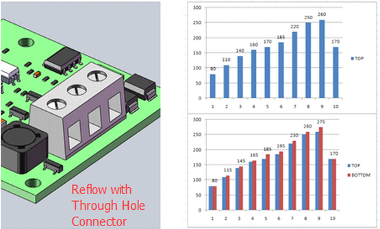 如果電路板上有大型SMT元件,例如電感器和鋁電容器,您也需要考慮設置不同的溫度,原因與TH連接器相同。 工程師需要收集特定電路板應用的熱數據并多次調整散熱曲線以確定正確的溫度。
